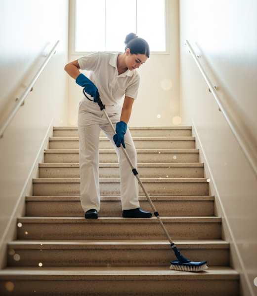 Wir reinigen Treppenhäuser in Mehrfamilienhäusern oder Geschäftsgebäuden zuverlässig, sicher und sauber – auf Wunsch mit Intervallplan (z. B. wöchentlich oder 14-täglich).